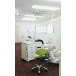 デンタルクリニックであるため、清潔感のある白い壁ははずせません。単純に白い壁をお選び頂く、というものではなく、天井・壁・ブースの腰壁でパターンを使い分けてリズムを作り、目が疲れない空間作りをご提案を致しました。