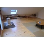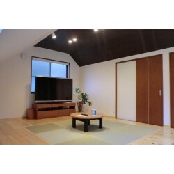 3階部が、屋根裏の収納部屋と居室の2室であったが、 収納部屋の天井が傾斜になっており使いづらいとお伺いしました。 なので壁を撤去し、1つの空間にすることで広々と使えるように提案しました。 ・床材には、桧材、そしてゴロっと寝転がれるスペースには琉球畳を。 ・天井は部分で色を替え、照明はダウンライトでオシャレに。 ・大好きな漫画の本を傾斜スペースに棚を作りスッキリ見せる収納に。