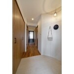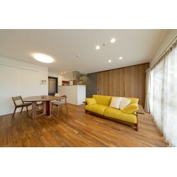 「これから長く暮らす家。素材にもこだわり、快適に暮らしたい」という思いから、無垢財を選択されたN様。 選んだチーク材の床は、お子さまがおもちゃを落としても傷が目立ちにくいよう、表面に小さな凹凸をつけた浮造り仕上げを希望されました。 壁はタイルを貼って空間のアクセントにしたり、曲線を描く広がりのある玄関スペースなど、N様の好みを汲み取ってご提案。築18年のマンションがスッキリ美しく生まれ変わりました。