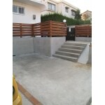 長いスロープのアプローチを撤去し、階段にすることで駐車スペースを確保する。フェンスは木製にして雰囲気作り。