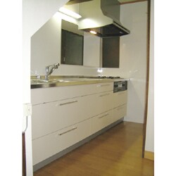 老朽化した水廻りを一新したいというのがお客様のご要望でした。特にキッチンは改段下の狭いスペースに設置しており、調理しづらいので工夫してほしいというご要望でした。 そこで以前は、改段下の狭いスペースに、L型キッチンを収めていましたが、今回I型にすることで調理スペースを確保。オールスライドタイプのキッチンにして、コンパクトながら十分な収納力を確保しました。