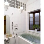 浴室の隣の納戸の、上の方にある窓からの光が浴室に入るようにガラスブロックを取付けました。浴室自体も納戸の方に少し広げています。