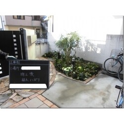植え込み部分には雑草が生い茂り、 建物にかかるくらい植栽の葉が伸びています。 草が伸びていると、ゴミが捨てられていることもありました。また夏には、タカラダニ等の虫が発生することもありました。