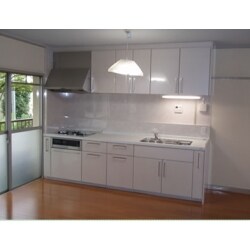 明るく清潔感を出すためにベージュ系の扉柄を採用した。