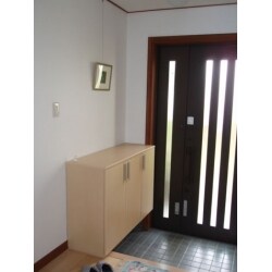 玄関扉を取替て光が十分に取れるようにし、あふれていた靴や荷物を2つの玄関収納ですっきりおさめました。