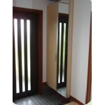 玄関扉を取替て光が十分に取れるようににし、あふれて板靴や荷物を2つの玄関収納ですっきりとおさめました。