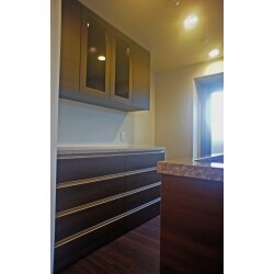扉の色や取っ手、人造大理石の天板は既設のキッチンに合わせたオーダーメード仕様にしました。
