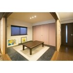 リビングとの一体感を持たせつつも、玄昌石調のフロアタイルや灰桜色の畳、木目調のクロスなどで、存在感のある空間に仕上げました。ご趣味も存分に楽しんでいただける客間です。