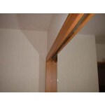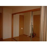 マンションの柱が出ている壁面に引き違いの扉を付けて、奥行き30cm程度の収納を作りました。ただし、その収納扉が大きな鏡なのでちょっとおしゃれに仕上がりました。 既製品(輸入品)を使うことで 結構お安く出来ました。