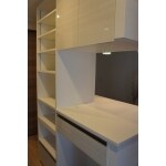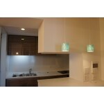 造作カップボード。 カウンター下に作業台を仕込み、引き出せるようにした機能的な収納へ。 左側には可動棚板を造り、デッドスペースを無くしたパントリースペースになりました。 カウンター上には、ステンドグラスペンダントを灯し華やかさをプラスしました。