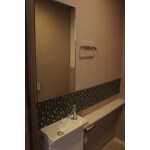 クロスはダークトーンにまとめ、ブラックのタイルを貼り大人な空間に。