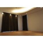 リビングには、R天井を造作。 天井上に、間接照明を設置しムーディーな雰囲気に。 照らす光が足りない部分にスポットライトも設置。
