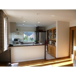 オープンキッチンにしながら、ガーデンを眺められる窓を新たに設置したいとのご要望があり、家電越しに眺めるのは悲しいと思い、テーブルを設置しました。 家電収納は必要な物だけを置けるカウンターにし、下にはゴミ箱を隠せるような空間を提案しました。 奥様専用の贅沢な空間と共に開放的で明るいキッチンになりました。
