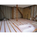 物置ガレージスペースとして利用されていたため、土間コンクリートが打ってありましたので、基礎をコンクリートではなく、鋼製束を利用して土台を敷きます。東面に洋間を設けて採光に配慮して、トイレやバスルームは西面に設置させていただきます。