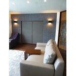 モダンさの演出と既存のドアを残すことを考え、ダークな色合いをご提案しました。 エコカラットは自然素材ですので、色のトーンを落としてもそれほど空間印象が暗くならないのでお薦めです。 間接照明を配置し、襖紙をエコカラット色に合わせたデザインをセレクトし、リビング全体が落ち着きあるモダン空間に返信しました。