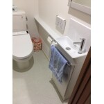 ウォシュレットのボタンが手洗い横の壁に付、手洗い下にも収納ができたため、お掃除道具など収納できるようになり、すっきりとしたトイレ空間になりました。
