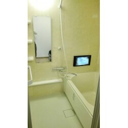 あたらしいお風呂の湯船は半埋めこみでマタギが低くなり、入りやすくなりました。 浴室テレビを見ながらゆっりとバスタイムを楽しめます。