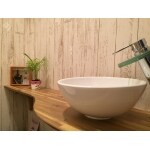 可愛い小物を集めることがお好きな施主様には、お気に入りの小物を飾れる造作カウンターをご提案しました。 また、施主様よりご用意いただいた洗面ボウルや水栓を取り付けて、使いやすい形にカットしています。 お選び頂いた可愛いクロスと相性もよく、施主様がお考えのフレンチカントリーテイストにピッタリな内装になりました。