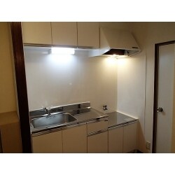 既存のキッチンにありました吊棚を撤去し、マイセットのベーシックタイプのキッチンに交換しました。 色もホワイトに変えたことで、すっきりと明るい雰囲気になりました。