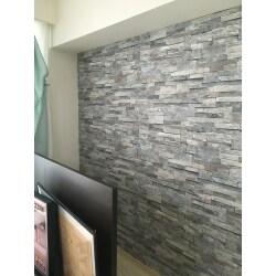 リビングの一部に、レンガ調かブルーの壁紙を貼りたい。色味を選ぶのにアドバイスももらいたい。