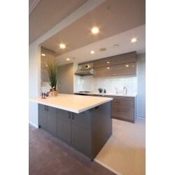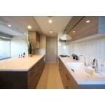 囲んでいた壁を取り除き、キッチンを2列配置にして明るく広々としたキッチンスペースを確保しました。またカウンターを設けフラットにすることで、お子様との食育の場やコミュニケーションの場となるようにプランニングしました。
