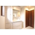 収納も充実。使いやすくシンプルで清潔な洗面台。