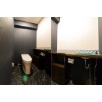 トイレは和紙風の壁紙でアクセントをつけ、床はPタイルで落ち着いたおしゃれな雰囲気を提案。