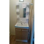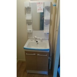 キャビネット内の排水を現場対応で変更することにより化粧台に取替えできました。