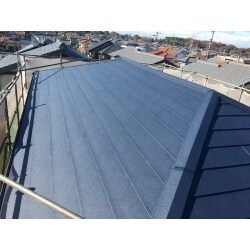 アイジー工業のガルテクトに葺き替えました。 スーパーガルテクトは屋根材と断熱材を一体化した金属屋根で、耐久性に強く、断熱性に優れ、しかも軽量なのが特徴です。