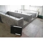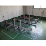土間の上に配管を組み基礎工事をして、新しいトイレの個室が2部屋完成しました。