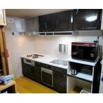 ほぼ、ご主人自らが考えられたキッチンプランで施工しました。 キッチン本体は短くなりますが、シンク横に電化収納を設置し、反対側にあった電子レンジをシンクに並べ、台所にスペースを作りました。 ビルトイン食洗器を設置し、今まで食器乾燥機を置いていたカウンターをすっきりとし戸棚下にアイラックを設置し、小物の収納も便利になりました。 壁はホーローのキッチンパネルを貼り、明るくきれいになった上、マグネットもつくことが出来、タカラのマグネット小物が設置できます。 アルカリイオン水機を壁にかけることでカウンターのスペースを確保しました。