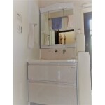 明るく機能的、収納力のある洗面室になりました。