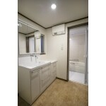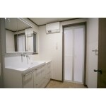 小花柄のクロスを気に入ってらっしゃったので、似た物をいくつかお持ちして提案いたしました。 また体重計なども収納できるような設備を提案し空間を広く使えるようにいたしました。 暖房を採用し寒さ対策をいたしました。