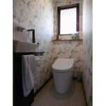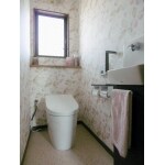 事務所兼用住宅のため、トイレの数も多くお掃除も大変なご様子でしたので、1・2階の住居用トイレはお掃除の楽な縁ナシ便器のタンクレストイレにし、手洗を新設するようご提案しました。各階とも手洗器は床下で給排水工事から行いました。改装後は以前の便器よりだいぶ節水になるので、ご家族が多いほど(使用回数が増えるため)違いを感じていただけると思います。
