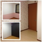 基本的に配色はお客様のご要望を反映していき、クロスの切替の部分や、補修方法のご提案を行いました。