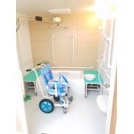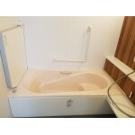 LIXILの介護用の浴室になります。車椅子の方が使いやすいような商品です。 引き戸になっており浴室の両端に移動台があるので腰を掛けたりできます。床もイージードライフロアになっているので 水はけがよくすばやく乾きます。 介護用リフトも設置したので、介護者にも使いやすい浴室となります。