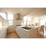 U字型キッチンからペニンシュラ型キッチンに。 料理をしながらリビング・ダイニングにいる家族とコミュケーションできるのがポイントです。