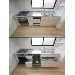 収納も引出しタイプでたくさん収納できます。 ガスオーブンや食洗機も内蔵してあります。