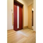 とってもスタイリッシュでかっこいい家のアクセントとなる玄関扉になりました。 引き戸の方が何かと使い易いですね。