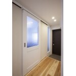 (旧積水化学工業株式会社での事例です。)玄関入って右側の洋室から間接的に外の光が取り込めるように壁の一部にガラスを施工。また、洋室の扉からも光が取り込め、明るくなった玄関にお客様も大満足。