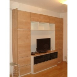 テレビボードは、天井の高さに合わせられる、オーダー家具を選定。床暖房の設置によって、床の高さが変わった為、建具の高さは現地で調整して合わせました。