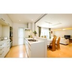 対面型キッチン前の可動式扉によって 急な来客など隠したいときに便利です