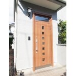 玄関ドアをリノベーション。 既存の木製玄関ドアから断熱性、気密性がある玄関ドアに交換。 いままではカギがかかりずらい時も多かったでのですが、カギの施錠がスムーズになり、快適になりました。