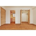 リビング・ダイニング・寝室として使う洋室です。 洋室を中心としての生活動線をご提案しました。 キッチン・洗濯機スペース・クローゼット等にドアを設け、洋室のすっきり感を演出できる設計をご提案しました。