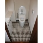 折角なので床も張替ましょうとなり、奥様とプランナーで選んだクッションフロアーはモロッコタイル柄、既存の造作材との色味もピッタリとした、印象的なトイレ空間が出来あがりました。