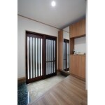 引き違い戸のスタイルはそのままに、縦にアクセントのあるデザインを選び、玄関まわりをすっきりさせました
