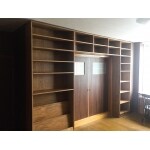 空間は広々活かしつつ、オリジナルの本棚とテーブルを作成させていただきました。本を収納するのが、選ぶのが楽しくなるようなものを目指しご提案させていただきました。