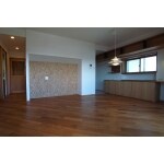 フローリングをすべて、木のぬくもりを感じられる無垢フローリングに張り替えをご提案。 フローリングを斜め張りにして床の広がりを感じ、動きのある空間に。