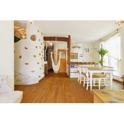 塗り壁:高千穂シラス、AZwall 床材 :無垢材杉材を塗装 体に触れる部分は自然素材を使用しているので、調湿・消臭機能を存分に体験できます。 シックハウスにももちろん対応。