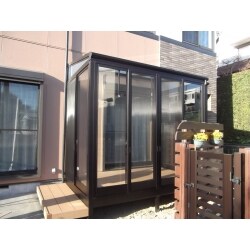 こちらのテラスルームは、なんと窓が開閉ができ、網戸も完備。お子様の遊び場としても大活躍しています。新しいウッドデッキは腐ることがなく、手入れが楽な樹脂木粉いり樹脂製です。また手前に以前は無かった門扉を作り、駐車場からの行き来が楽になりました。